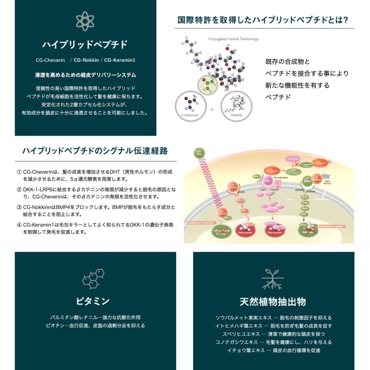 水、フェノキシエタノール、ヒアルロン酸Na、ヒドロキシプロピルメチルセルロース、グリセリン、アルギニン、ダイズ油、EDTA-2Na、クエン酸、水添レシチン、デカペプチド-10、オリゴペプチド-54、デカペプチド-18、アセチルデカペプチド-3、オリゴペプチド-42、オレイン酸Na、ビオチン